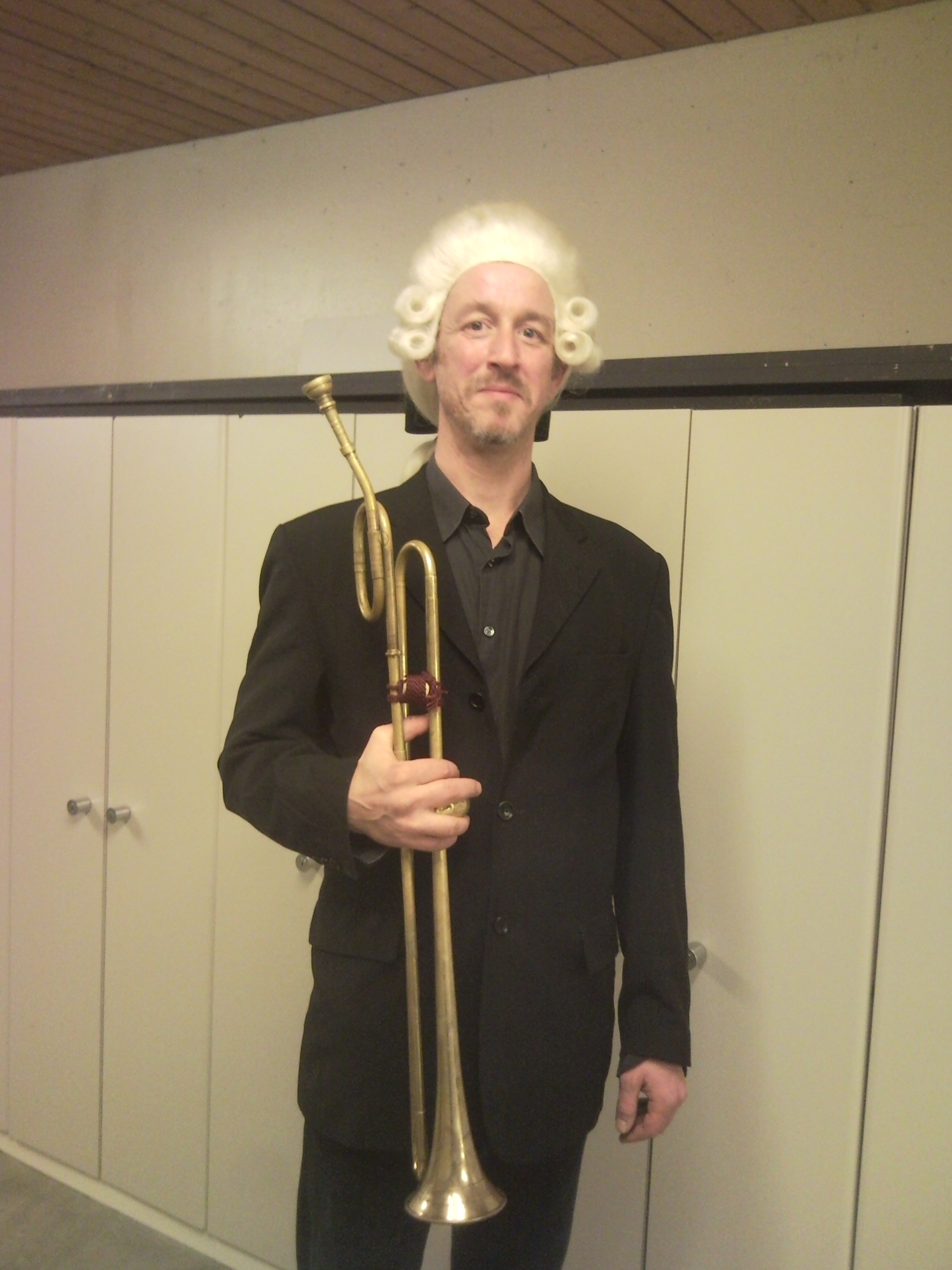 Circa 2014, with “flatt” trumpet and a bad impression of Bill Bailey.