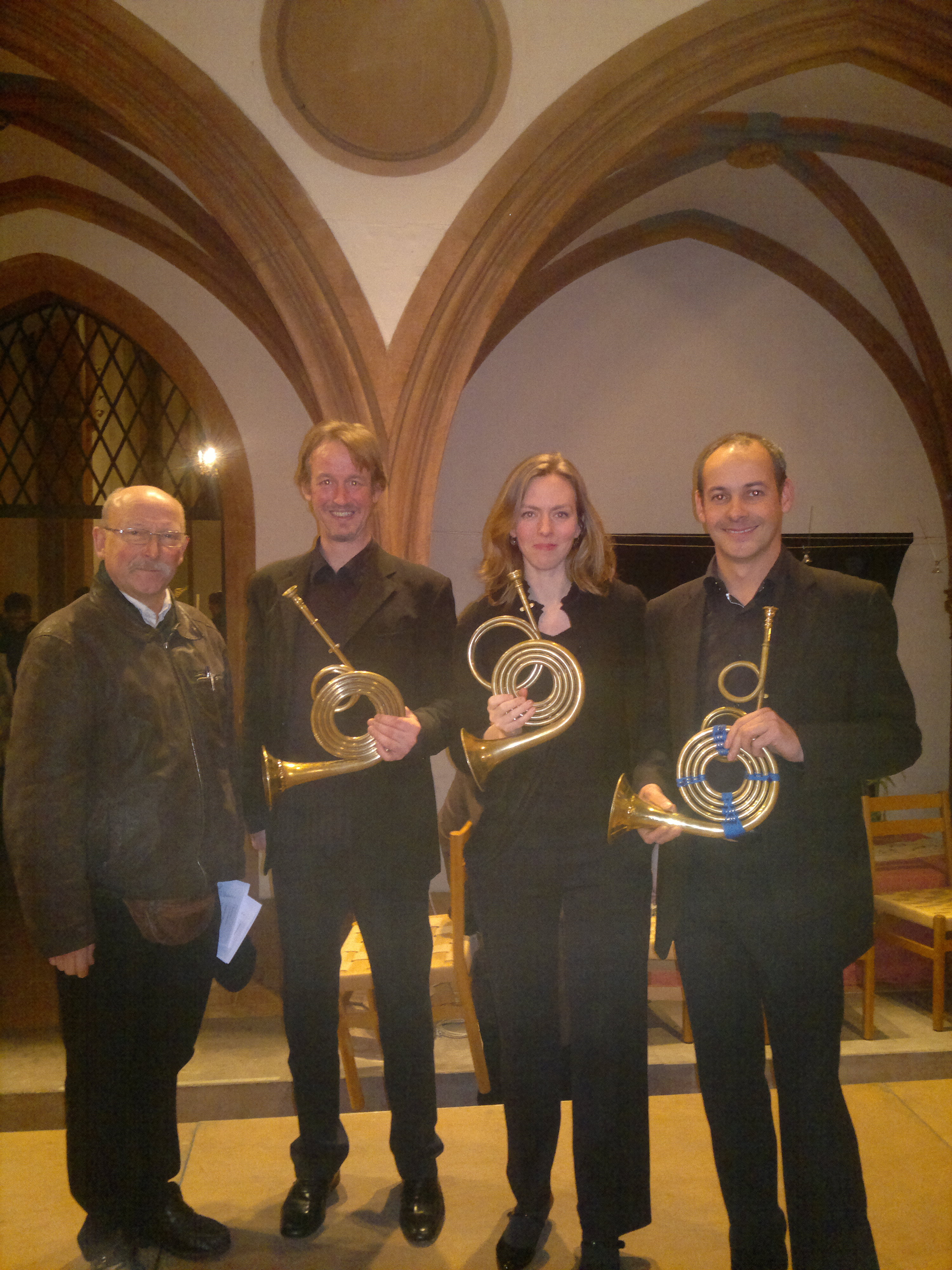 Jan 2012, performance of BWV 143, including 3 Corni in Bb. Left to right, the maker Rainer Egger, me, Ella Vala Ármannsdóttir, Jean-Charles Denis.