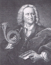 Something “new” you’ll be hearing in this concert is a corno da tirarsi, one of the mystery instruments from Bach’s Leipzig period. As mentioned in the programme last March, no example survives. Thanks to Blechblas-Instrumentenbau Egger in Basel, we now have one. The corno da tirarsi (lit. ”Pull horn”), was unique to Gottfried Reiche, Bach’s celebrated trumpet virtuoso. Using a copy of the coiled instrument from Reiche’s portrait, Gerd Friedel has ingeniously added a crook -of which Reiche would have had many- with a short double slide, enabling the required notes to be played with a historically possible solution.